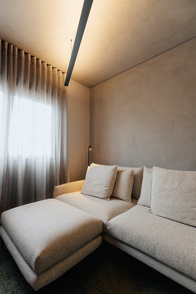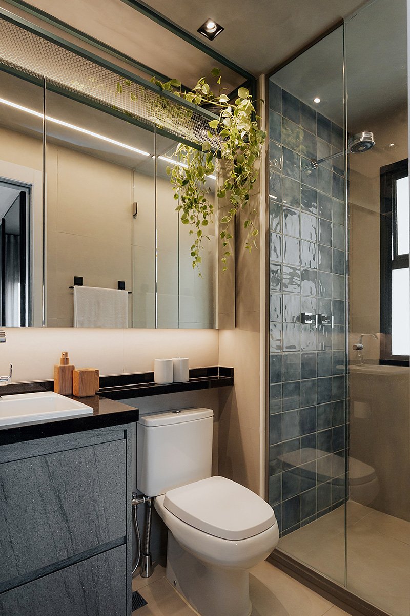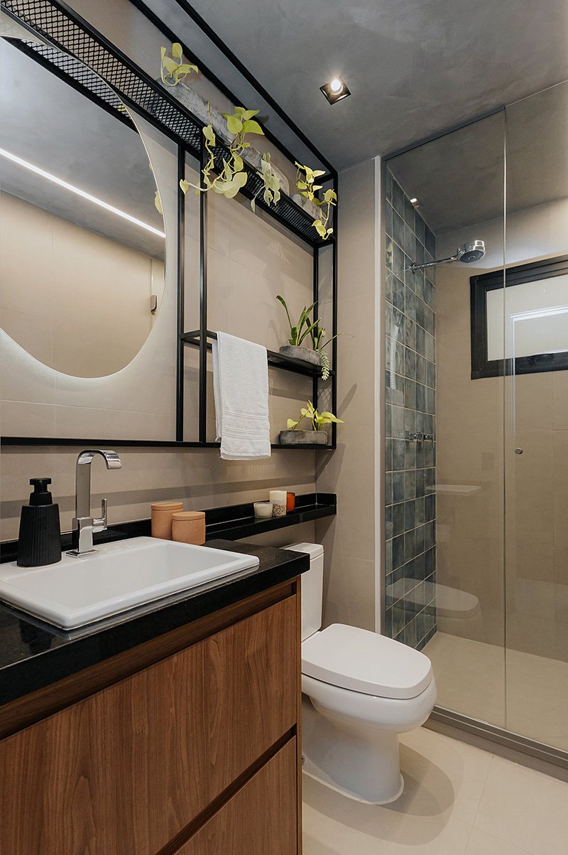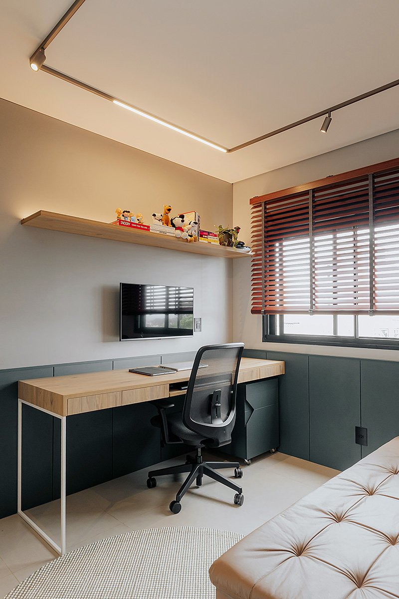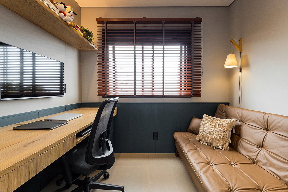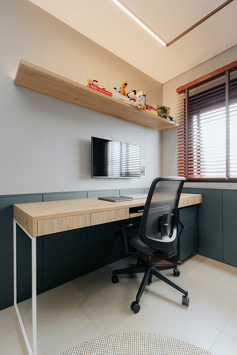 Neste projeto, um dos principais pedidos do cliente foi a manutenção integral dos revestimentos originais entregues pela construtora. Antes de contratar nosso escritório, ele já havia adquirido um kit de revestimentos personalizados sugerido pela própria construtora, e nosso desafio foi integrar essas escolhas ao novo conceito do apartamento, garantindo unidade estética, personalidade e funcionalidade aos ambientes.