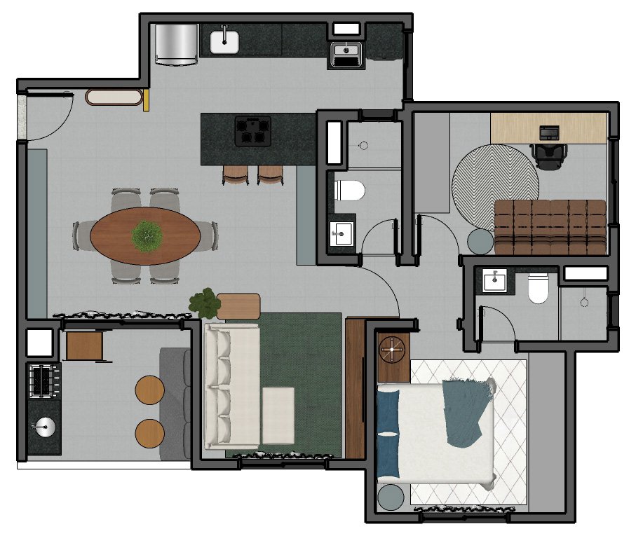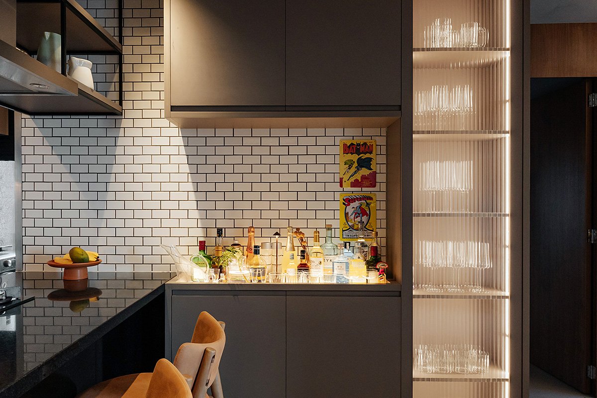 Apartamento pensado para um jovem descolado, que valoriza momentos de convivência, gosta de receber amigos e de celebrar a vida em casa.