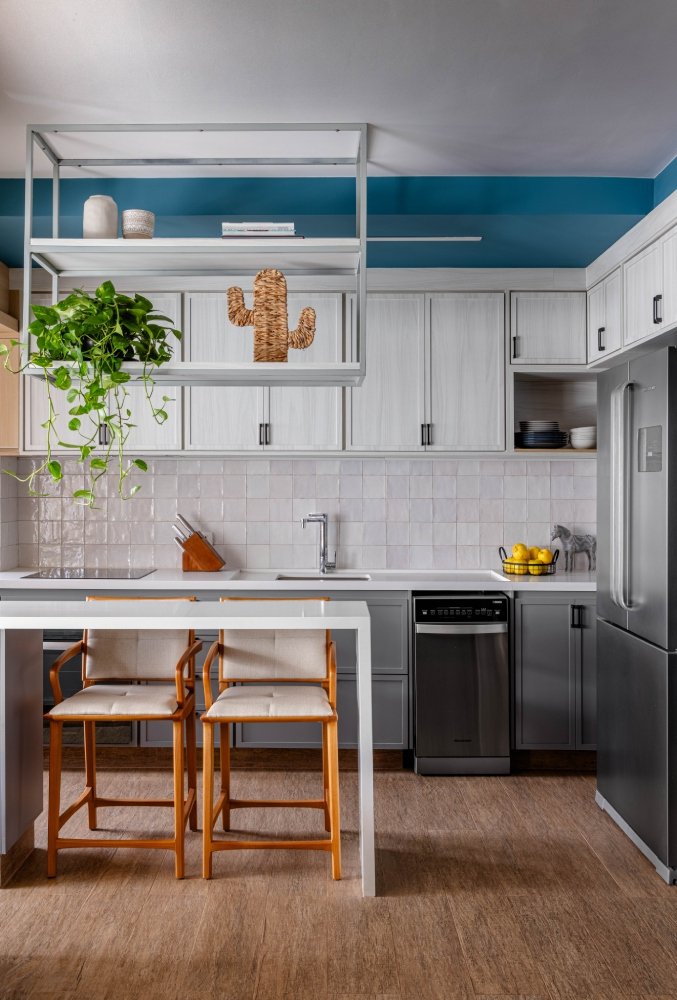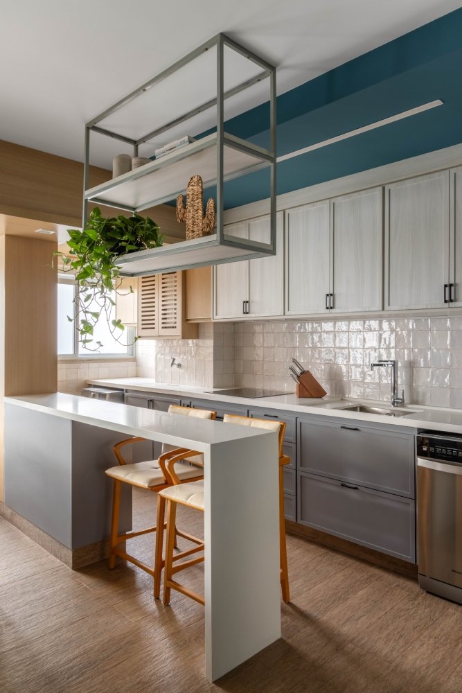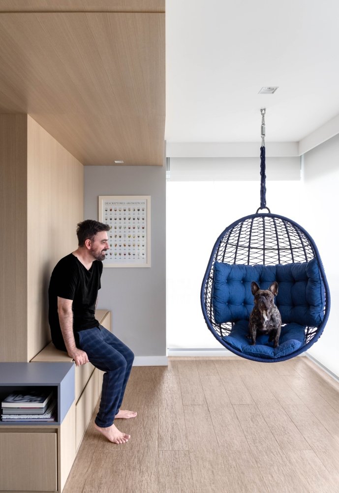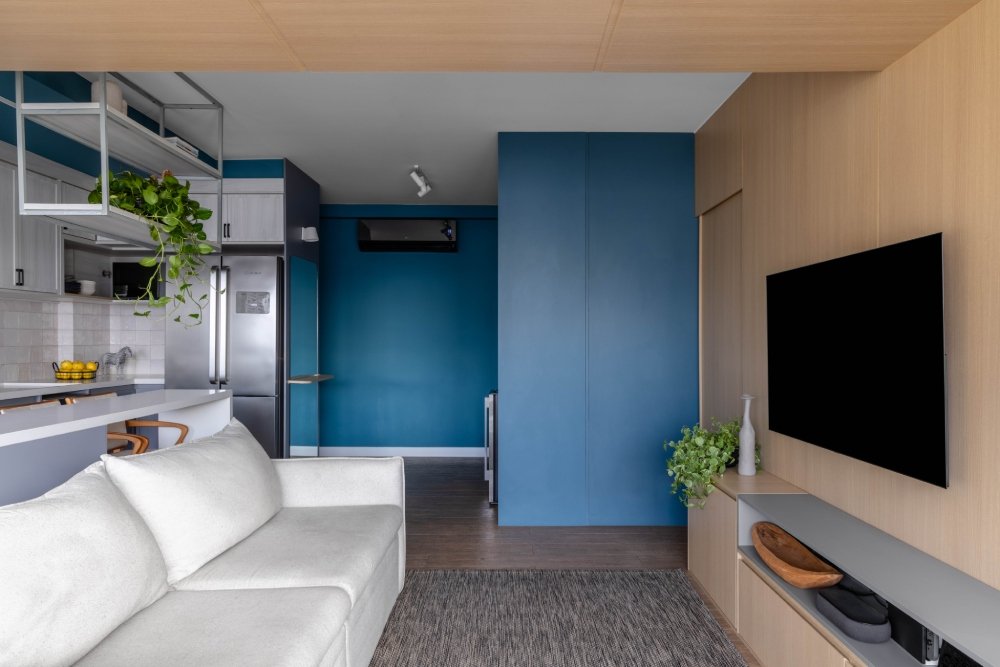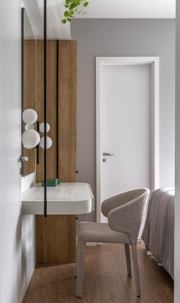 Apartamento para um jovem casal, onde os principais pedidos foram a integração dos espaços, a criação de um closet e a criação de áreas de armazenamento. Para melhor aproveitamento dos espaços a planta foi totalmente refeita: fizemos a demolição de algumas paredes, integrando a varanda ao espaço interno da sala e aumentamos a cozinha com a eliminação de um lavabo.