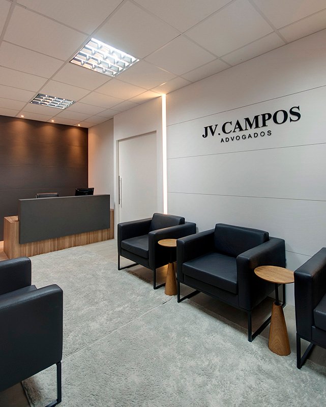 A paleta de cores escolhida é composta por tons sobrios e neutros, como cinza, preto, azul escuro e branco, transmitindo uma sensação de sobriedade e equilíbrio. Essas cores também ajudam a criar um ambiente tranquilo e concentrado, propício para o trabalho intelectual exigido na prática do direito.