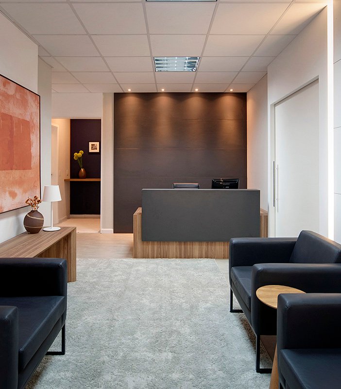 O maior desafio encontrado foi o prazo de 45 dias entre projeto e execução. Para que fosse possível foi necessário mantermos o piso e o forro acústico existente no espaço, alguns dos mobiliários pré-existentes, além de agilidade e precisão no desenho do projeto. Trabalhamos em estreita colaboração com os fornecedores e contratados, garantindo que o cronograma fosse seguido rigorosamente e que não houvesse atrasos na entrega dos materiais e na conclusão da obra.