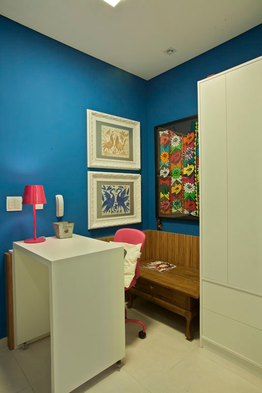 Cores vibrantes e ousadia na mistura de estampas caracterizam o trabalho da nossa cliente, uma consultora de moda. Esses preceitos deveriam marcar visualmente esse espaço de cursos, além de referencias mexicanas, país que foi sua moradia por alguns anos e cuja cultura refletiu bastante influencia em seu estilo.